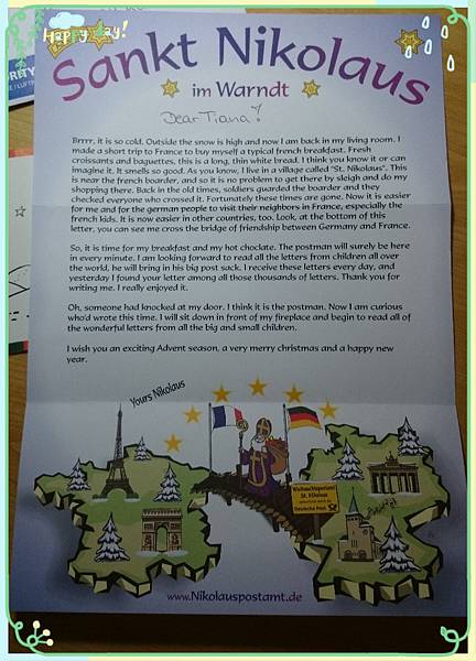 聖誕老人說他住在一條叫St Nikolaus的村,離法國邊境很近,所以可以成日去shopping